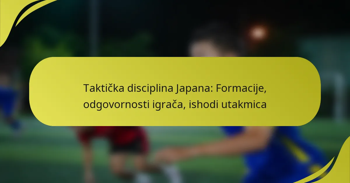 Japanske nogometne momčadi koriste strateške formacije poput 4-4-2, 4-2-3-1 i 3-5-2 kako bi optimizirale dinamiku tima i uloge igrača. Ova taktička disciplina potiče jasno razumijevanje odgovornosti, omogućujući učinkovitu provedbu kako ofenzivnih tako i defenzivnih strategija koje mogu značajno utjecati na ishod utakmica.