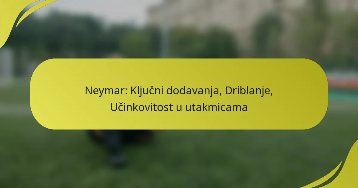 Ključni pokazatelji izvedbe (KPI) za procjenu Neymarove učinkovitosti na utakmicama uključuju broj ključnih dodavanja, uspješno završene driblinge i golove ili asistencije po utakmici. Ove metrike pružaju jasnu sliku njegovih doprinosa tijekom igara.