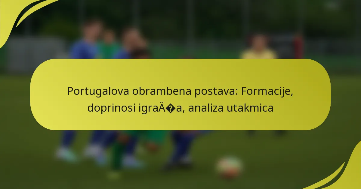 Portugalova obrambena postava karakterizirana je mješavinom taktičkih formacija, doprinosa igrača i strategija prilagodljivosti koje poboljšavaju ukupnu izvedbu tima. Ključne komponente uključuju korištenu formaciju, pozicioniranje igrača i njihovu sposobnost prilagodbe različitim protivnicima tijekom utakmica.